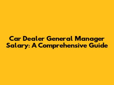 Car Dealer General Manager Salary: A Comprehensive Guide