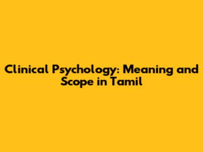 Clinical Psychology: Meaning And Scope In Tamil