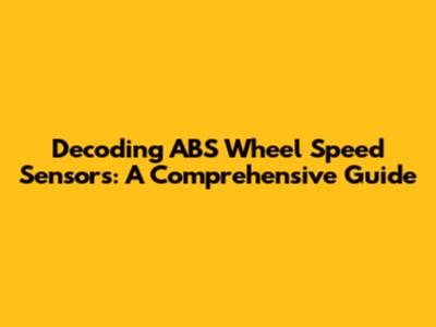 Decoding ABS Wheel Speed Sensors: A Comprehensive Guide