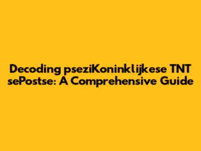 Decoding PseziKoninklijkese TNT SePostse: A Comprehensive Guide