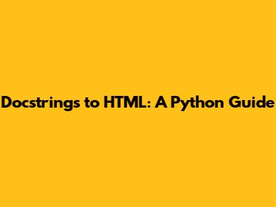 Docstrings To HTML: A Python Guide