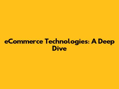 ECommerce Technologies: A Deep Dive