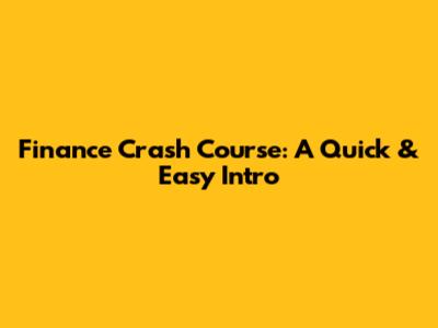 Finance Crash Course: A Quick & Easy Intro