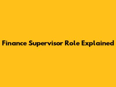 Finance Supervisor Role Explained