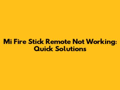 Fix Mi Fire Stick Remote Not Working: Quick Solutions