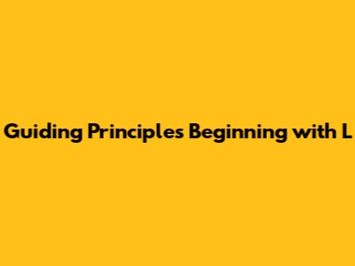 Guiding Principles: Find The Right 'L' Principle Now!
