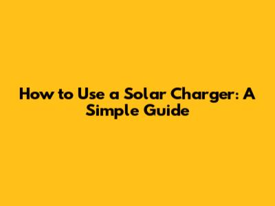 How To Use A Solar Charger: A Simple Guide