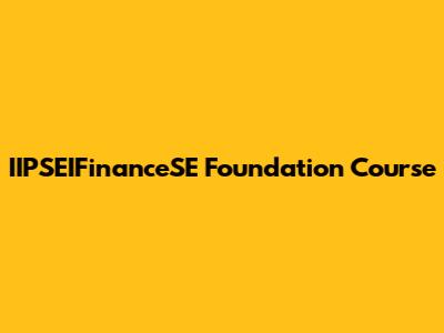 IIPSEIFinanceSE Foundation Course: Your Path To Success