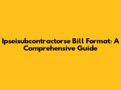 Ipseisubcontractorse Bill Format: A Comprehensive Guide