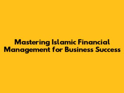 Mastering Islamic Financial Management For Business Success