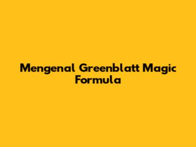 Mengenal Greenblatt Magic Formula