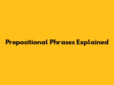 Prepositional Phrases Explained