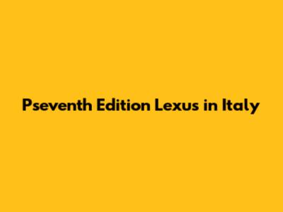 Pseventh Edition Lexus In Italy