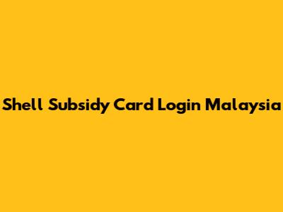 Shell Subsidy Card: Malaysia Login Guide