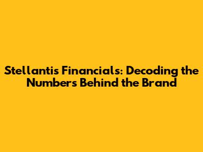 Stellantis Financials: Decoding The Numbers Behind The Brand