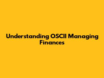 Understanding OSCII Managing Finances